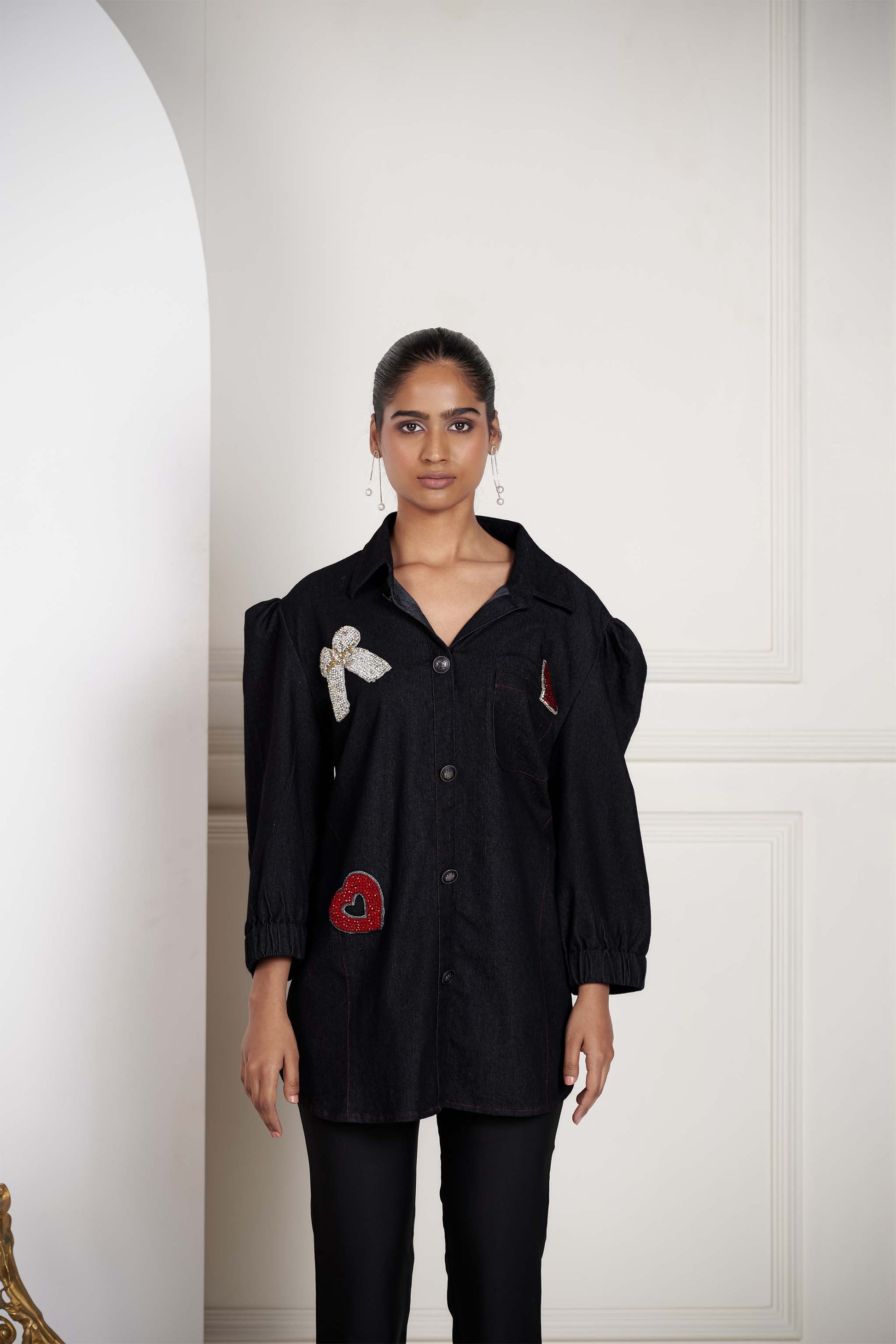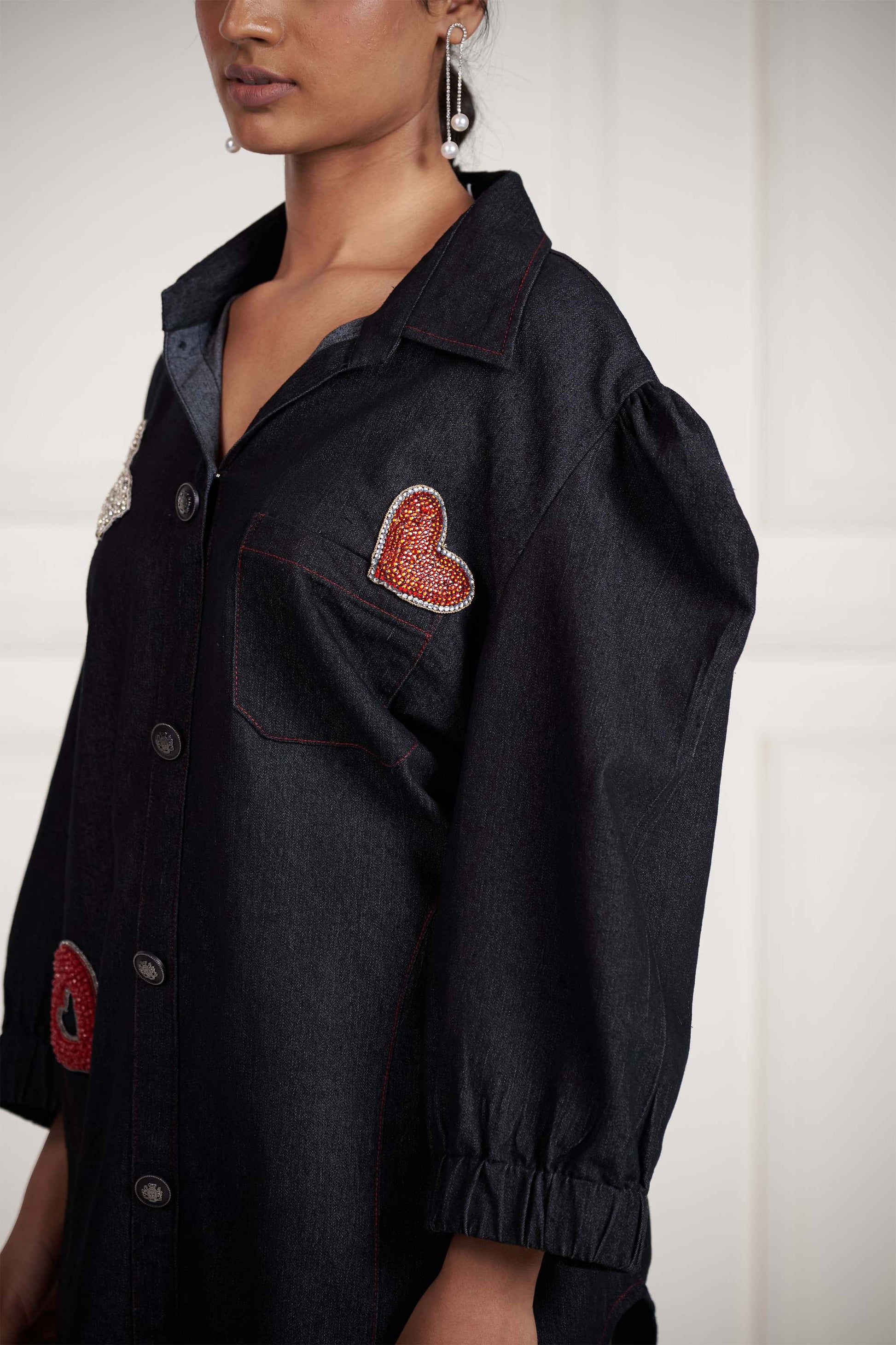 Detailed with embroidered hearts, a dainty bow, and haunting charms.