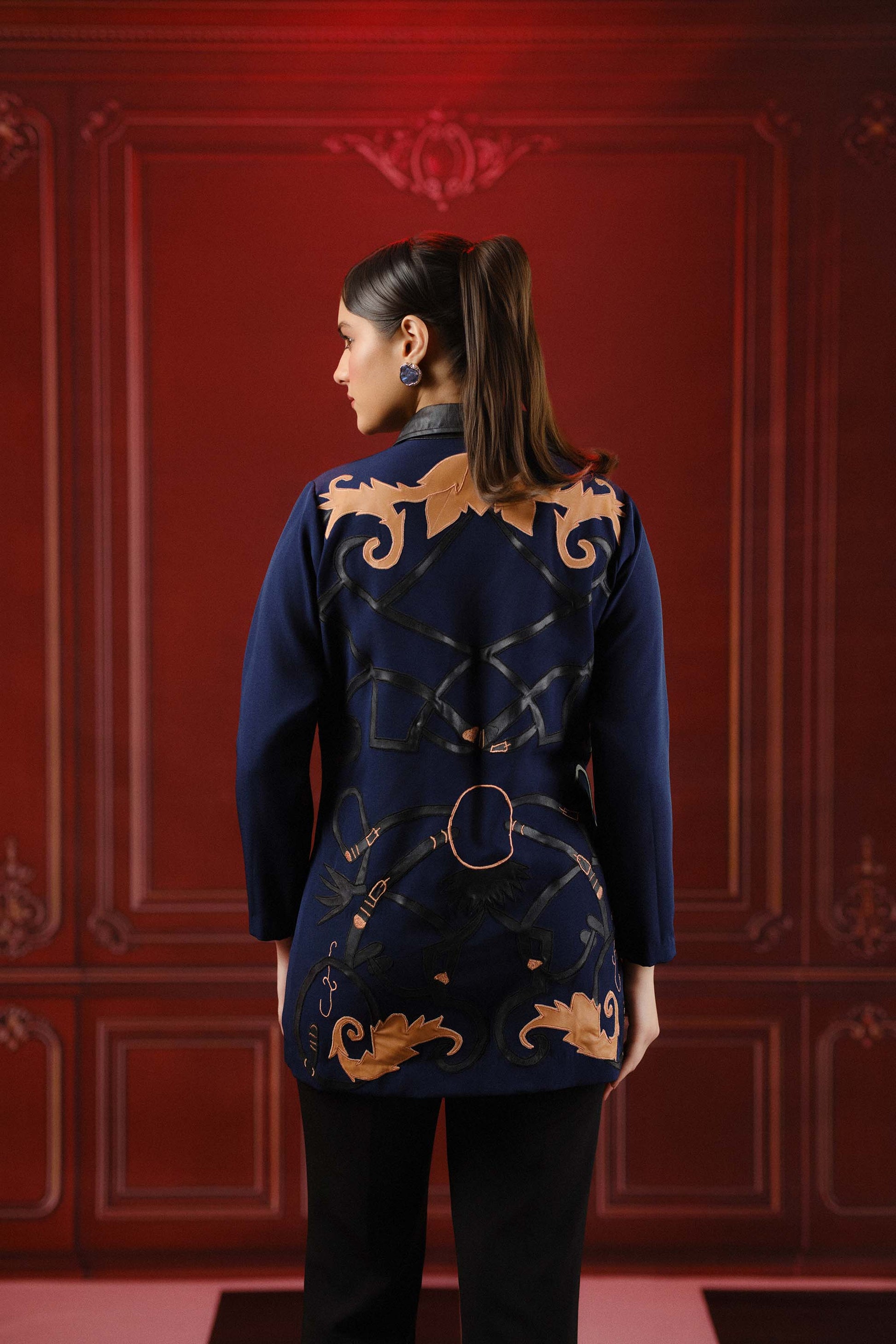 A statement jacket featuring meticulous hand patchwork and expertly crafted leather detailing on the front and back. For a bold sophisticated look.