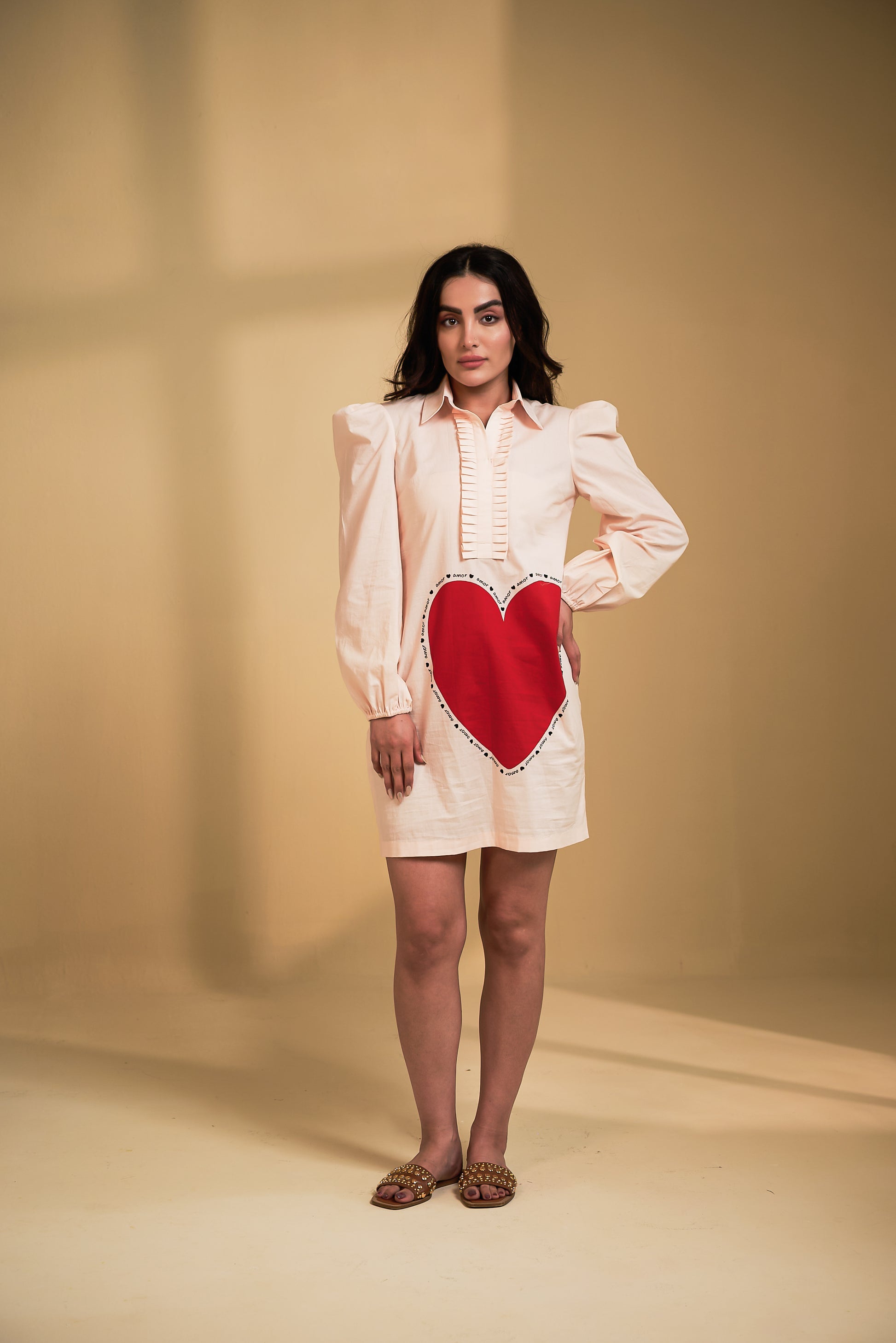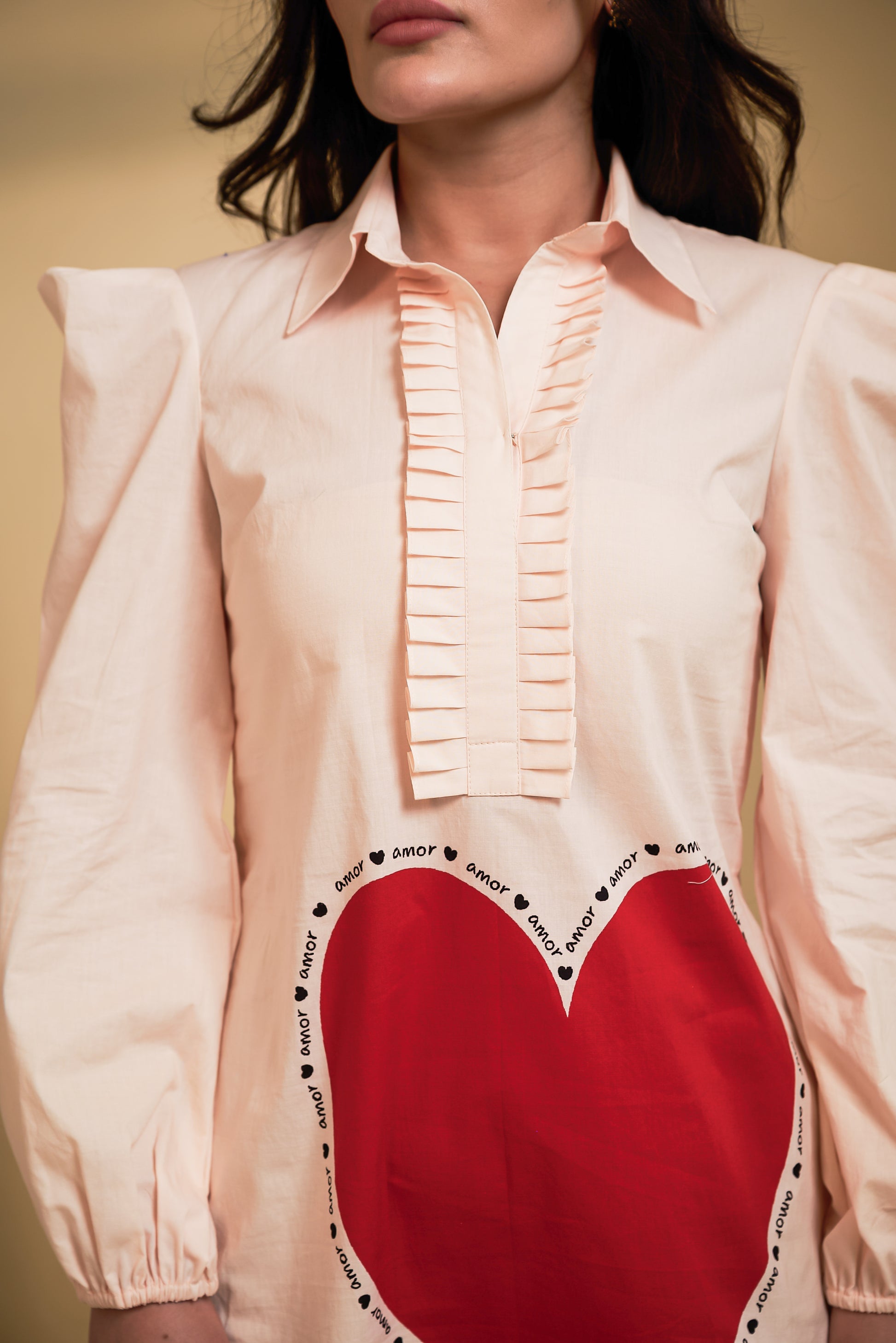 Playful meets polished in blush beige. Adorned with heart and cherry motifs in rich red , crafted in soft breathable fabric , perfect for everyday ease .