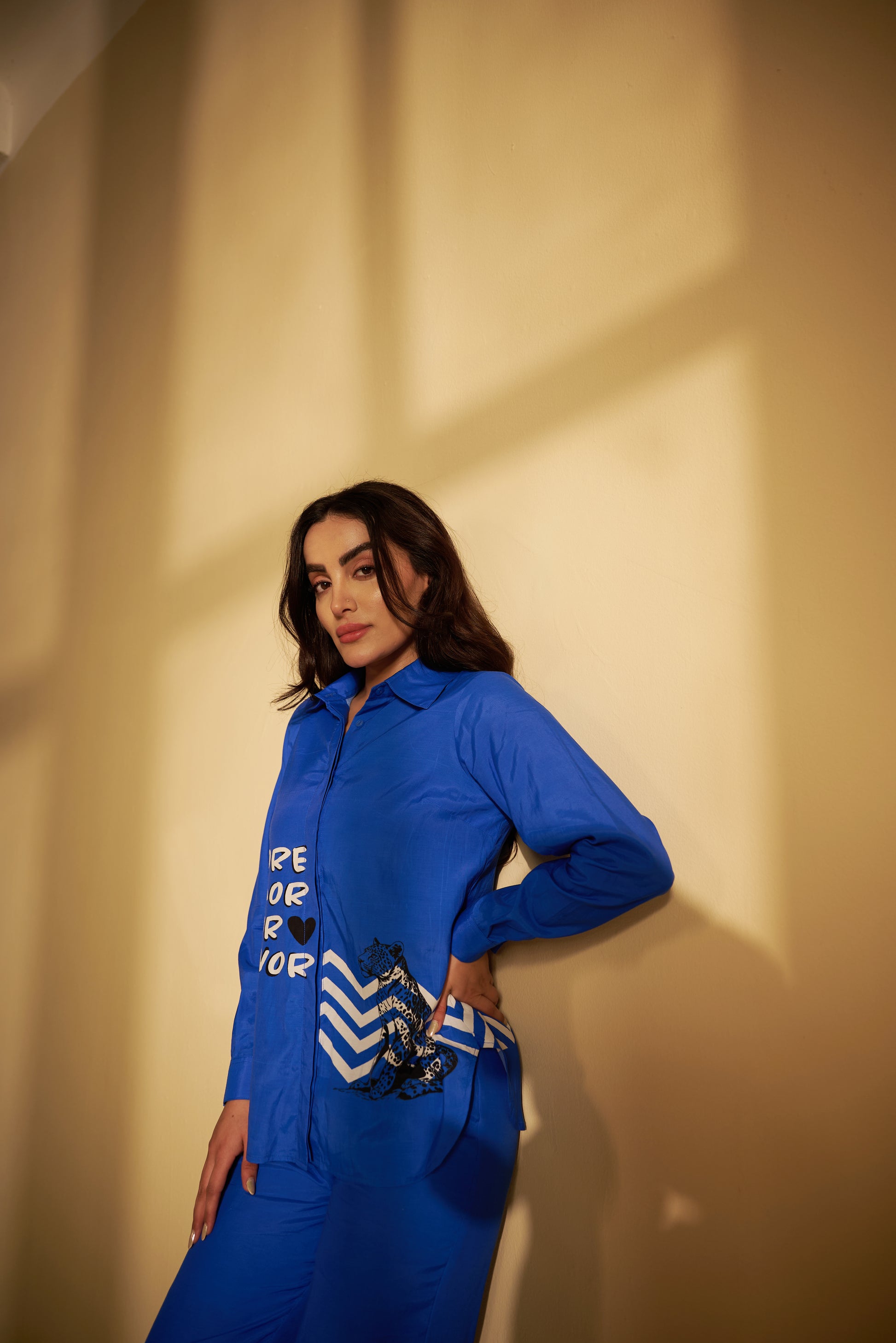 Elevated ease meets bold design, crafted for comfort with a graphic edge . Featuring striking geometric details interwined with a panther emblem. a well tailored silhouette adds to its understated appeal a piece thats versatile and wearable.