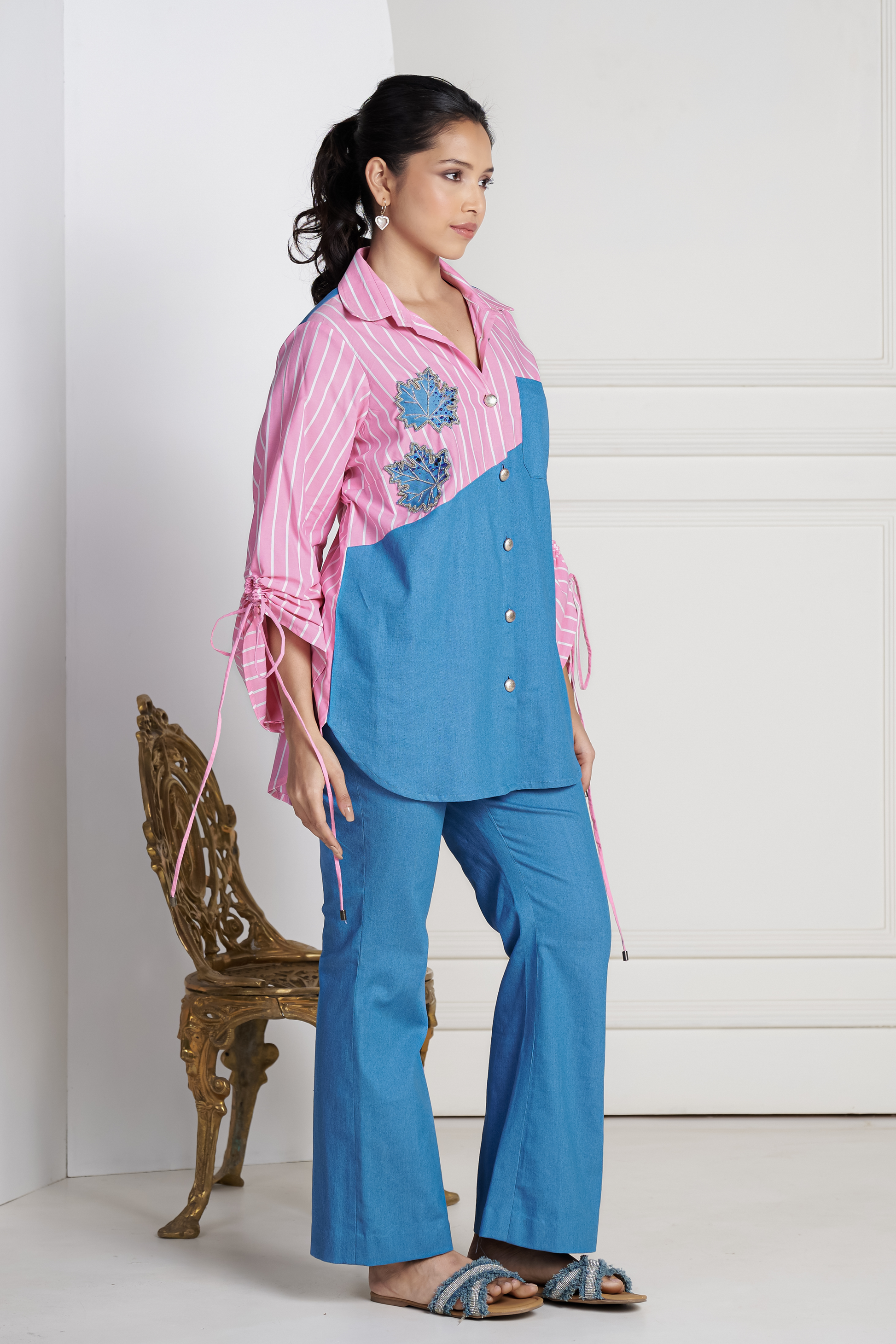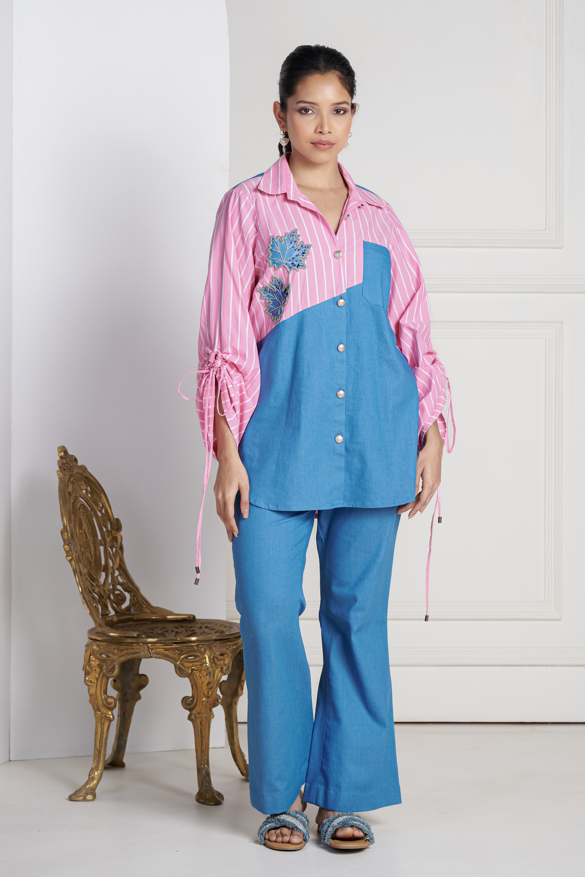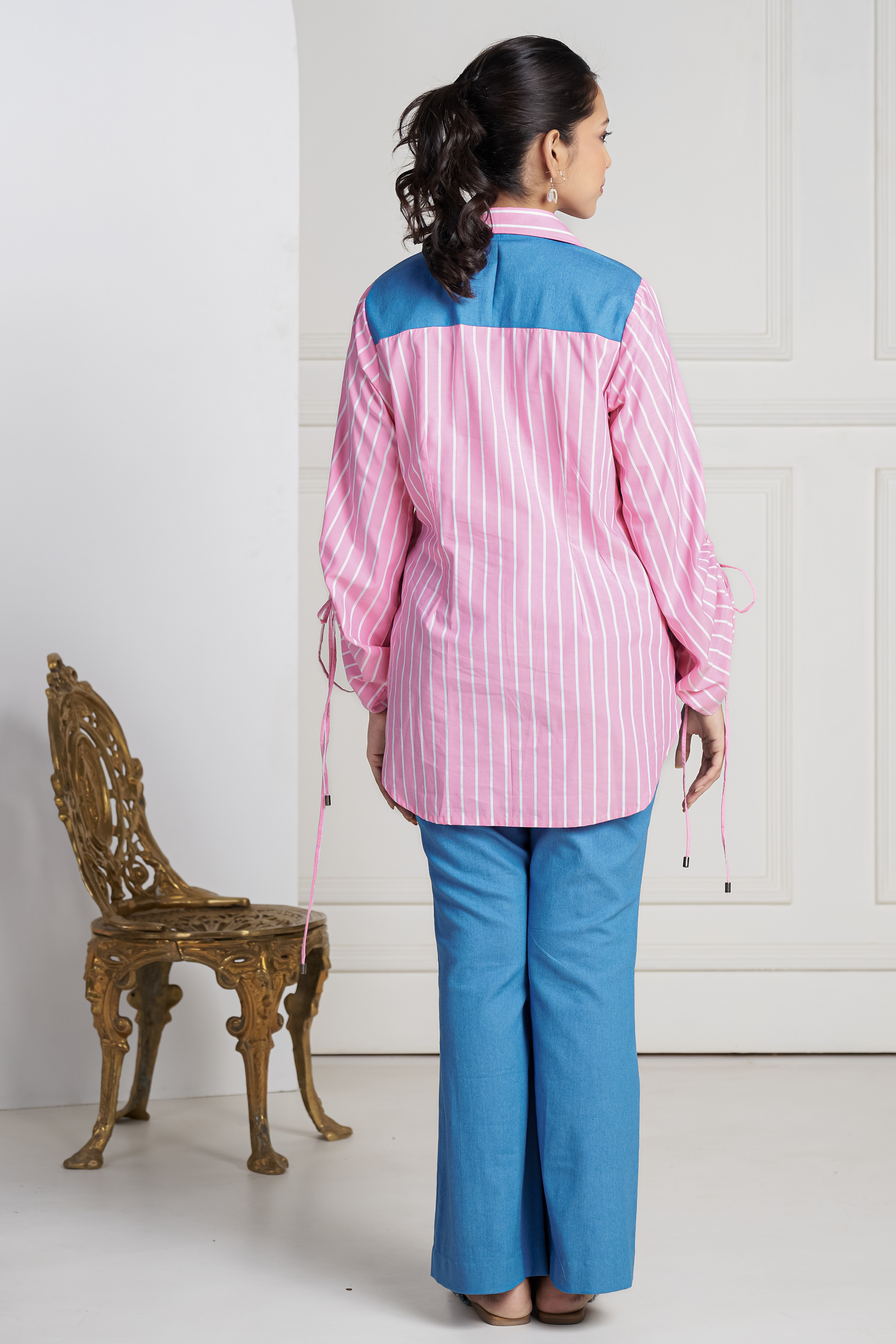 COLOR- BABY PINK STRIPED WITH BLUE DENIM
