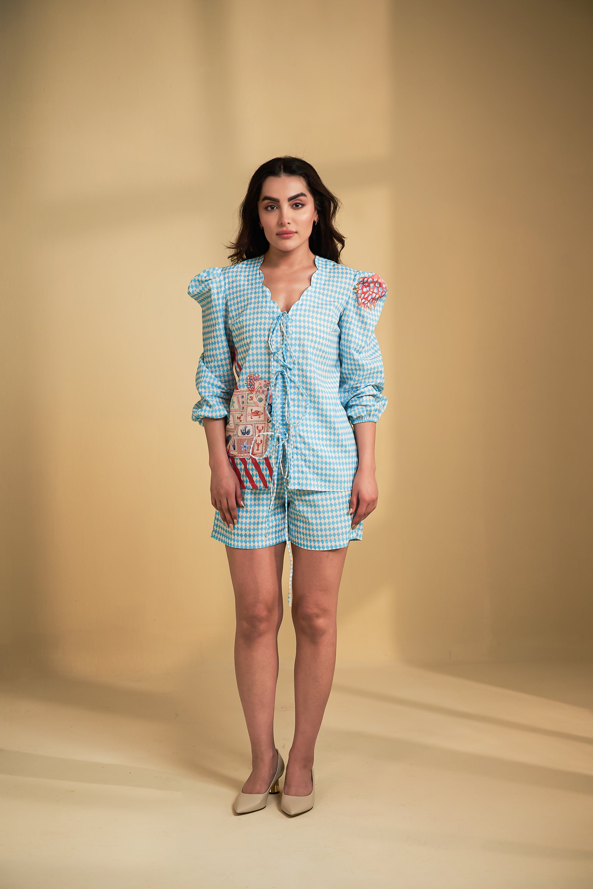 A effortless style featuring a unique prism printed pattern infused with delicately hand drawn marine creatures. this print blends geometric precision with an underwater dreamscape which is refreshing and statement making.
